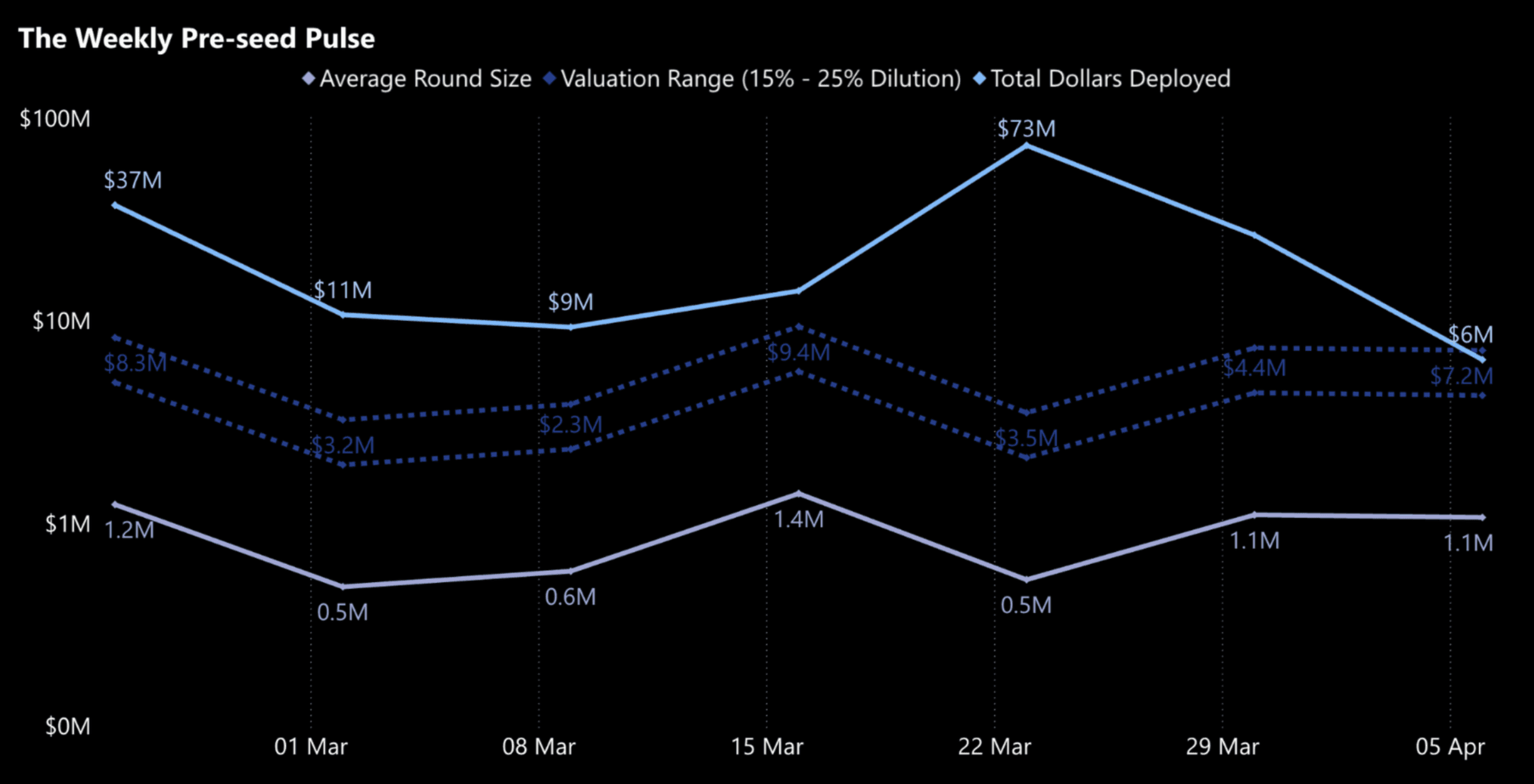 March pre-seed capital raised fell to a five-year low. Although additional stealth rounds may still roll in, current data shows funding is down nearly 50% year-over-year and about 25% below its low in 2021.